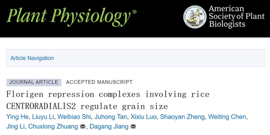 近日,我校生命科学学院、亚热带农业生物资源保护与利用国家重点实验室和岭南现代农业科学与技术广东省实验室庄楚雄研究员团队在国际知名学术期刊Plant Physiology上发表了题为“Florigen repression complexes involving the rice CENTRORADIALIS2 regulate grain size”的研究论文(论文链接:https://academic.oup.com/plphys/advance-article-abstract/doi/10.1093/plphys/kiac338/6647857)。