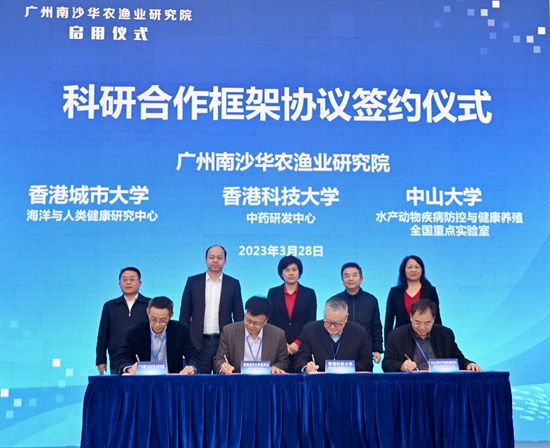 研究院和香港城市大学海洋与人类健康研究中心、香港科技大学中药研发中心、中山大学水产动物疾病防控与健康养殖全国重点实验室签订了科研合作框架协议。
