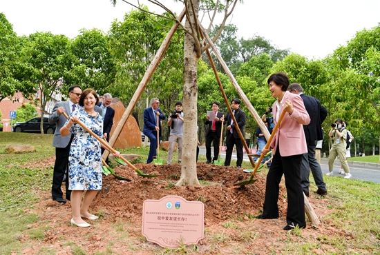 “Welcome to GDIC!”在教六前广场,来自广州都柏林国际学院的师生手执中爱两国国旗,对大使馆代表团的到来表示热烈欢迎。在广场东南角上,双方共同栽下一棵凤凰木,象征中爱友谊长存。