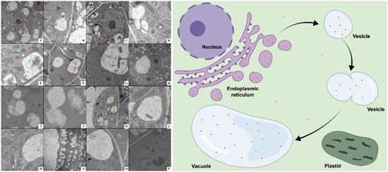 运用免疫胶体金技术,分析了茶枝柑果皮分泌囊中橙皮苷合成酶的积累模式,Crc1,6RhaT首先在内质网合成,经过囊泡运输释放到液泡中进而利用前期转运至液泡中的底物合成了橙皮苷并在液泡中贮藏。