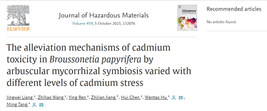 近日,我校林学与风景园林学院、亚热带农业生物资源保护与利用国家重点实验室、岭南现代农业科学与技术广东省实验室唐明教授团队在中科院一区Top期刊Journal of Hazardous Materials(IF=13.6)在线发表了题为“The alleviation mechanisms of cadmium toxicity in Broussonetia papyrifera by arbuscular mycorrhizal symbiosis varied with different levels of cadmium stress”的研究论文(https://doi.org/10.1016/j.jhazmat.2023.132076)。文章报道了丛枝菌根(Arbuscular mycorrhiza, AM)真菌异形根孢囊霉(Rhizophagus irregularis)在不同程度镉胁迫下对构树(Broussonetia papyrifera)的生理生化、镉吸收及其分子调控机制的影响,揭示出AM真菌对不同程度镉胁迫下调控构树镉耐受性的机制。