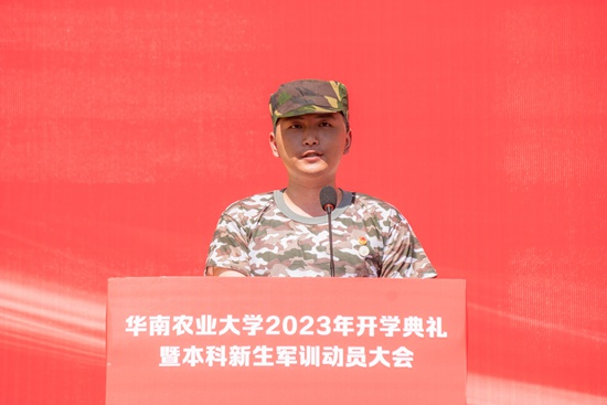 “知农爱农、强农兴农,这是华农师生的光荣使命;一代代华农人弦歌不辍、薪火相传,我们更应追随榜样,向光而行!”来自生命科学学院2023级生物科学(生物学基地班)专业的游苏桐同学代表本科新生上台发言,号召同学们立大志、担大任、成大才,以青春之力逐梦伟大时代。
