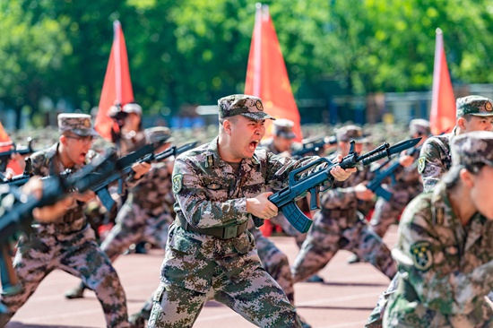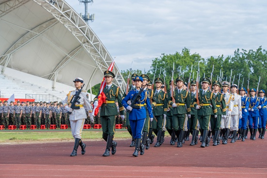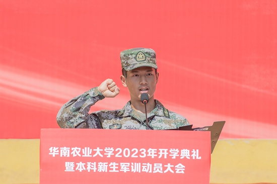 来自食品学院2023级食品科学与工程专业的李昶佑同学代表全体参训新生郑重承诺,遵守纪律、服从安排,刻苦训练,提升技能,“力争成为有灵魂、有本事、有血性、有品德的‘四有’新兵!”