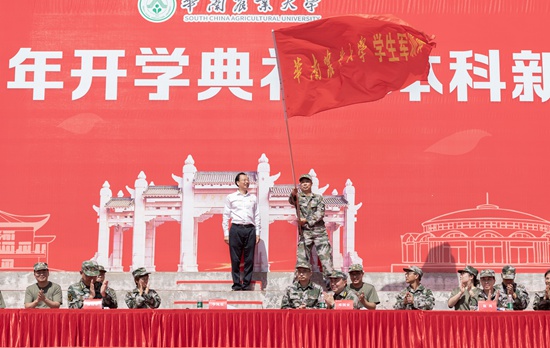校党委书记李凤亮向军训师授旗,校长刘雅红作新生寄语讲话。副校长、军训师师长杨运东部署军训任务并作军训动员讲话。中国科学院院士刘耀光,中国工程院院士罗锡文,校领导陈少雄、温小波、咸春龙、蒋育燕、钟强出席典礼。校党委副书记邓国安主持典礼。