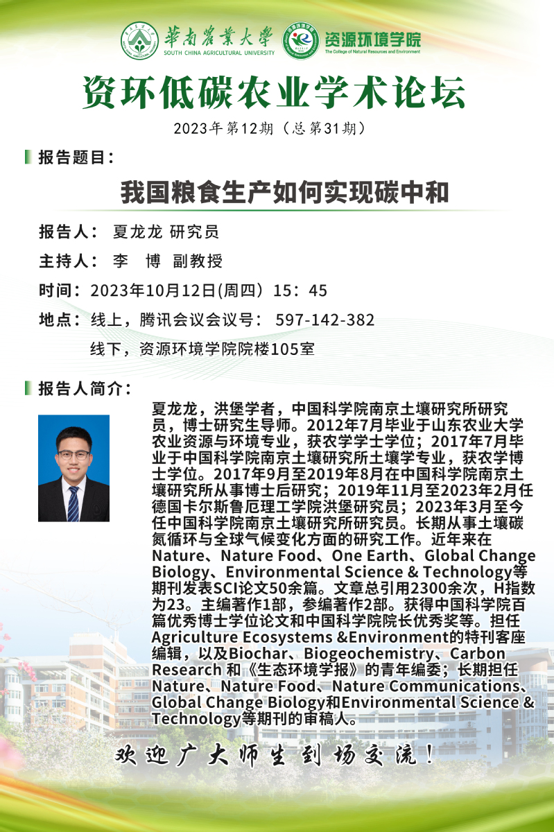 115周年校庆“学术华农”系列活动:农业环境保护论坛第19期暨低...