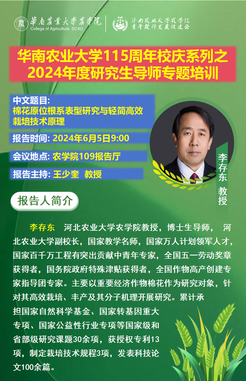 115周年校庆“学术华农”系列活动之0179--农学院2024年度研究生导师专题培训:棉花原位根系表型研究与轻简高效栽培技术原理