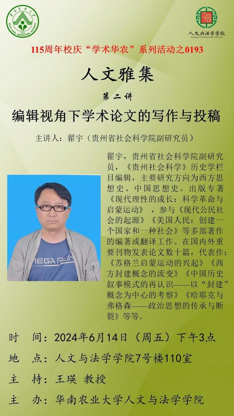 115周年校庆“学术华农”系列活动之0193:【人文雅集讲座系列】编辑视角下学术论文的写作与投稿