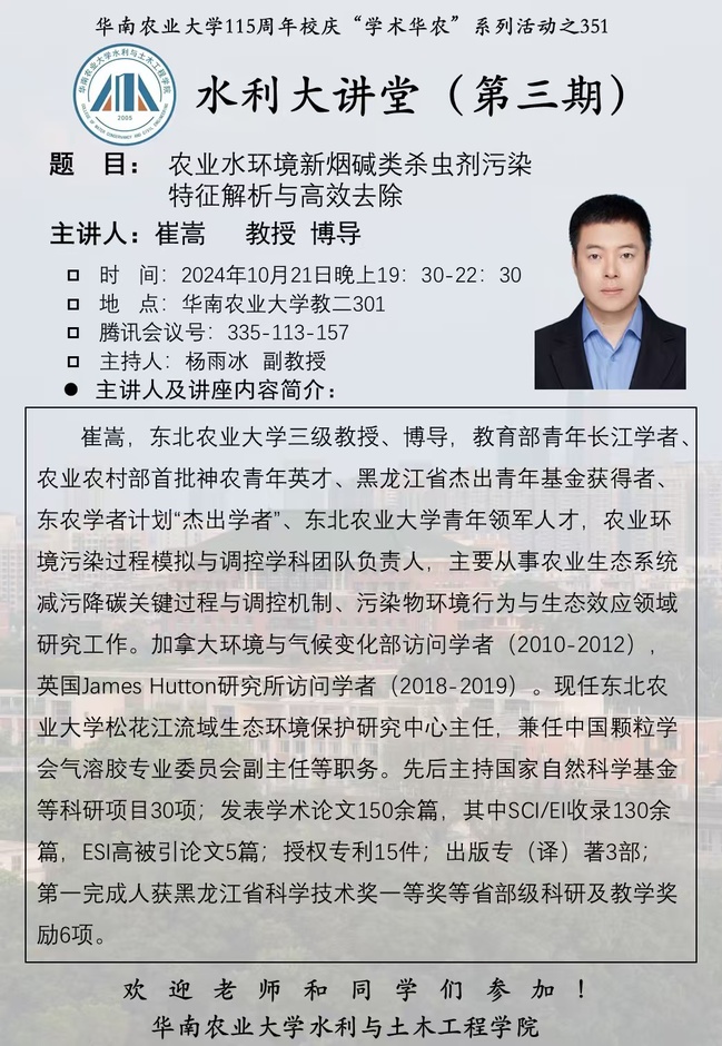 115周年校庆“学术华农”系列活动之0351:农业水环境新烟碱类杀...