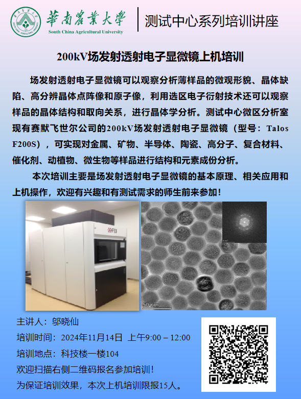 115周年校庆“学术华农”系列活动之0420:测试中心系列培训讲座-200kV场发射透射电子显微镜上机培训