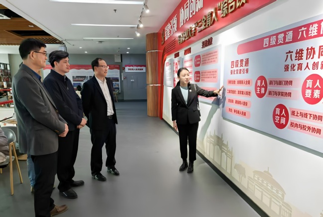 期间,欧洪湛、唐冬冬一行实地参观了大学生思想政治教育体验馆(党员教育中心)、综合体育馆、校史馆等。