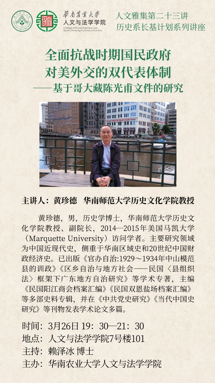人文雅集第二十三讲:全面抗战时期国民政府对美外交的双代表体制——基于哥大藏陈光甫文件的研究