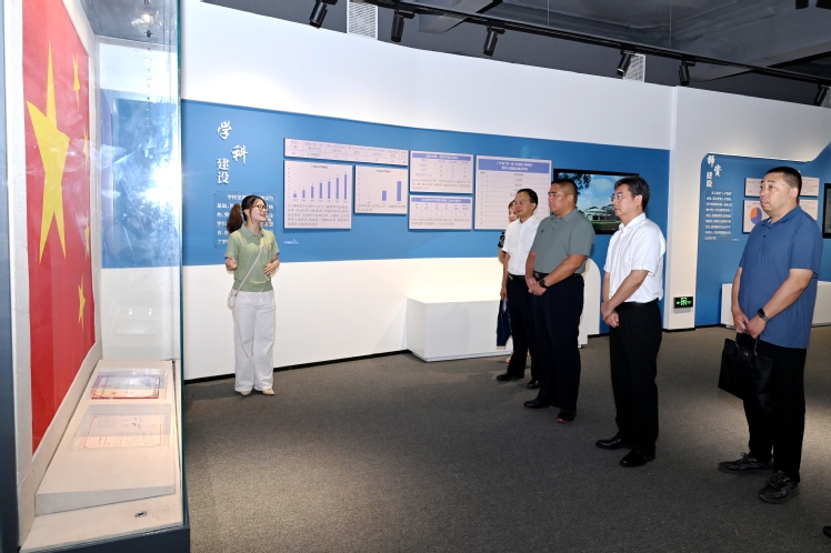 座谈会前,郭文龙一行参观了校史展览馆,实地检查了天安门广场国旗的保管与展陈情况。