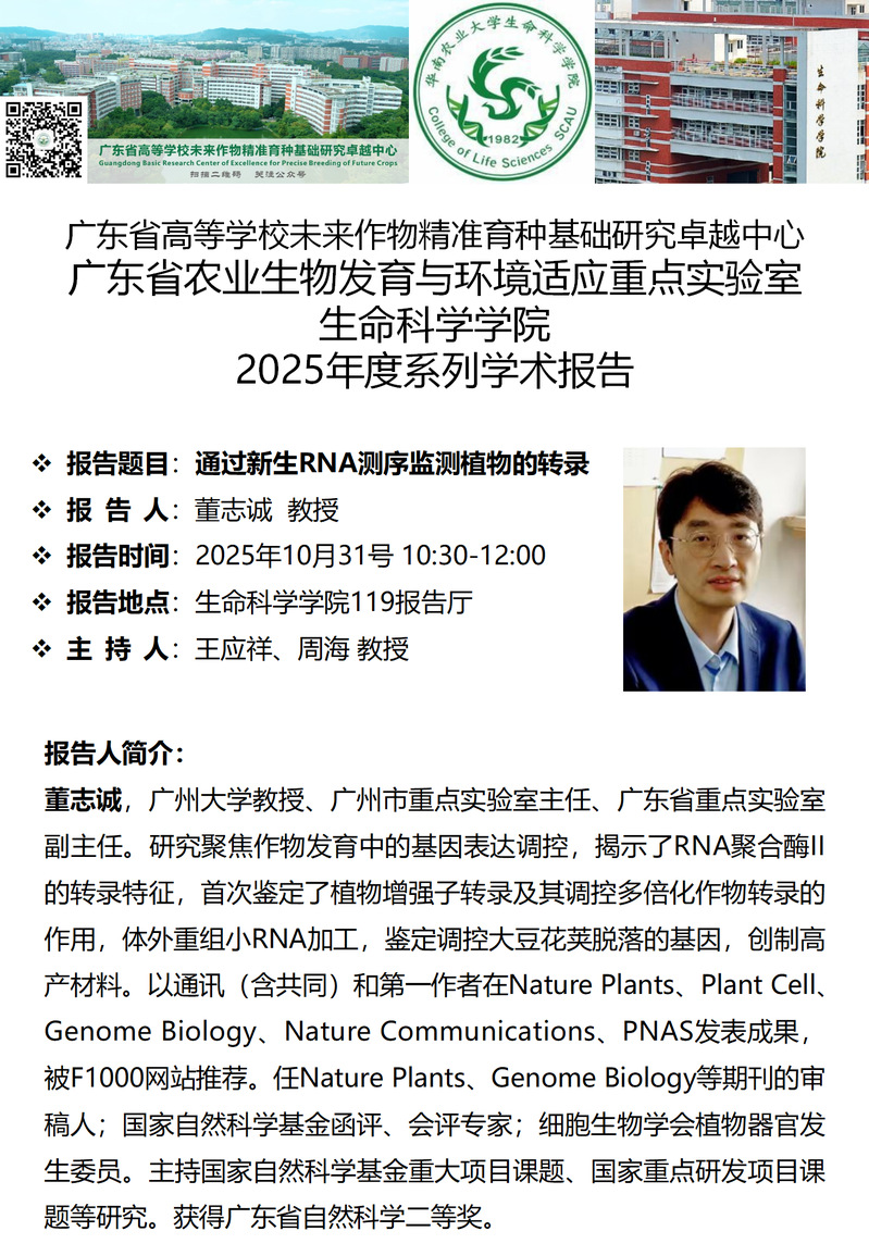 生命科学学院特邀报告——通过新生RNA测序监测植物的转录
