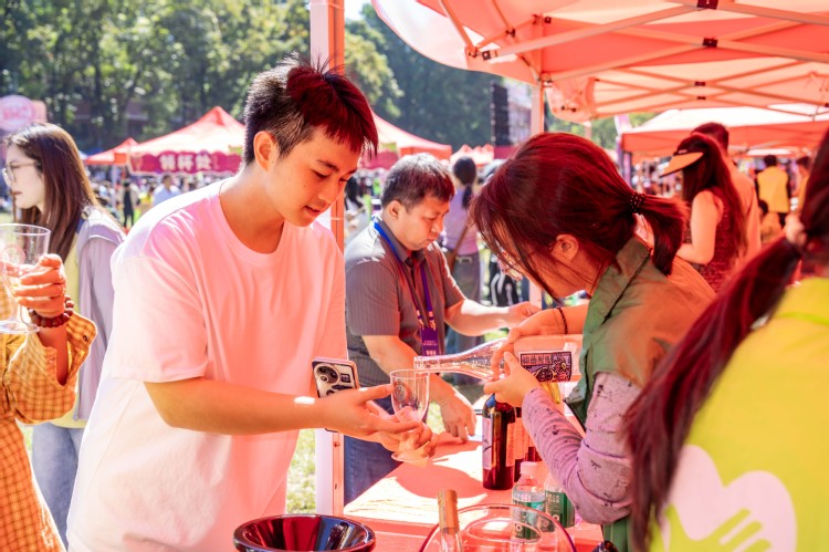 各色佳酿在酒杯间流转,葡萄酒香令空气微醺……葡萄与葡萄酒科学文化游园会暨粤菜美食嘉年华现场人头攒动,参会本土葡萄酒企业拿出好酒供游客现场品鉴,华农各大食堂美食带来舌尖盛宴,现场同步布置“举杯贺兰山—微醺纷玩岛”专题活动、宁夏产区葡萄藤认养展区、“天山杯”全国大学生葡萄与葡萄酒艺术创意大赛作品展、华农校友企业展、华农优品展,吸引了众多师生、校友和市民前来参观游玩。