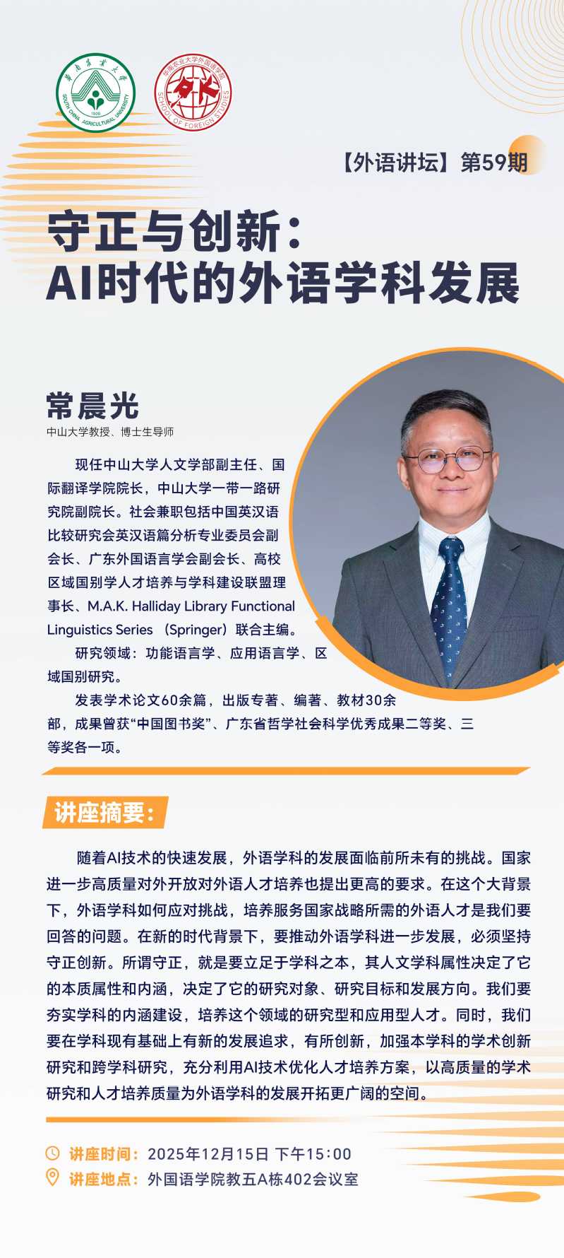 【外语讲坛】第59期:守正与创新:AI时代的外语学科发展