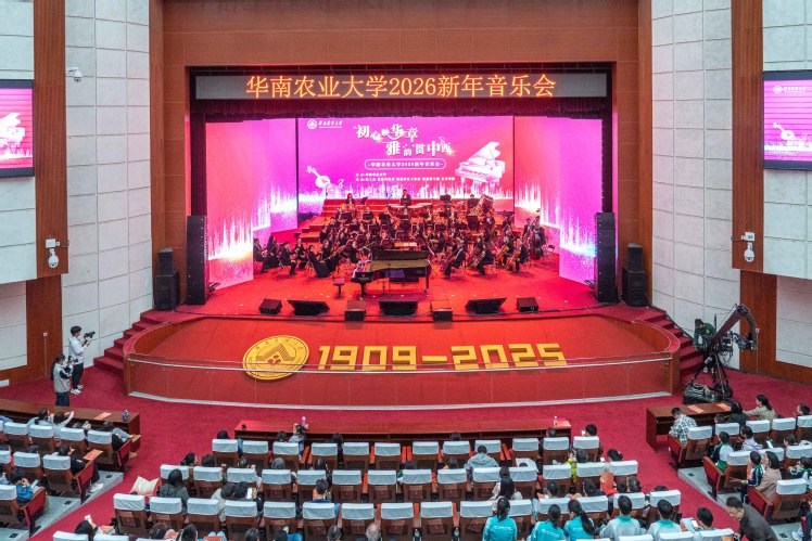 “初心映华章 雅韵贯中西”2026年新年音乐会精彩上演。华农师生携手广州岭南交响乐团带来一场中西交融的艺术盛宴,音乐会同步在华农官方视频号、南方都市报平台直播,近3万人在线收看。