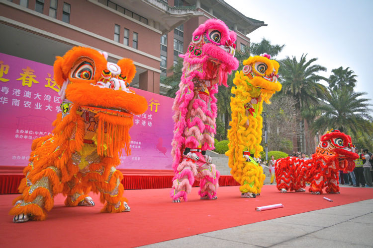 醒狮献瑞点睛,嘉宾同台开笔,书法摊位前,不少热情的师生市民已在排队等候。书法家及书法爱好者组成的志愿团队,摆开笔墨纸砚,现场挥毫。“龙腾四海歌盛世,春满湾区福临门”“志愿服务暖人心,同心共筑中国梦”等一副副寓意吉祥、饱含深情的春联,伴随着墨香送到师生市民手中,一大批提前精心准备的书法作品同步发放。舞台上,歌舞、民乐演奏等迎春节目轮番上演,与书写现场的热闹景象相映成趣,营造出喜庆祥和的节日氛围。
