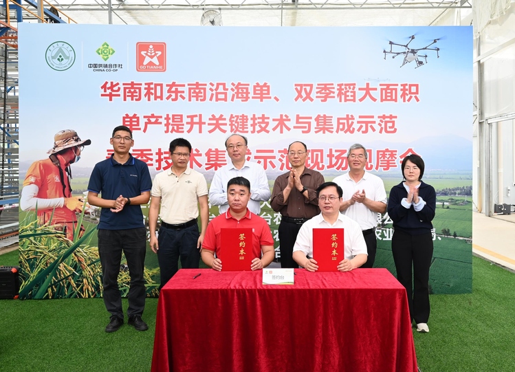 参会代表还前往增城丝苗米国家级现代产业园和台山市“广东第一田”万亩基地参加春耕技术集成示范现场观摩会,与增城区农业农村局有关负责人、丝苗米生产企业相关人员开展深入交流,围绕水稻大面积规模化产业化的运营模式、科技赋能、技术适配、品牌打造等提出了系列有指导性的发展思路与建议。项目负责人章家恩代表项目组与台山市嘉台农业科技服务有限公司签署产学研示范合作协议,进一步深化项目技术成果的集成示范应用与落地见效。