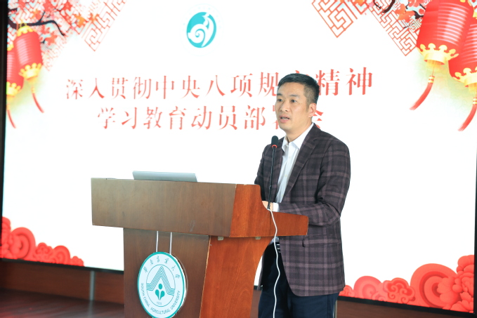 为持续深化党的创新理论武装,锲而不舍落实中央八项规定精神,推进作风建设常态化长效化,3月21日,动物科学学院在温氏楼三楼会议室召开深入贯彻中央八项规定精神学习教育动员部署会。会议由学院党委书记陈志远主持。