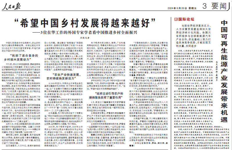 在他看来,过去10多年,中国农业农村不少领域发生了巨大变化,“环境越来越漂亮,道路越来越完善,产业快速发展,农村持续焕发新活力。”
