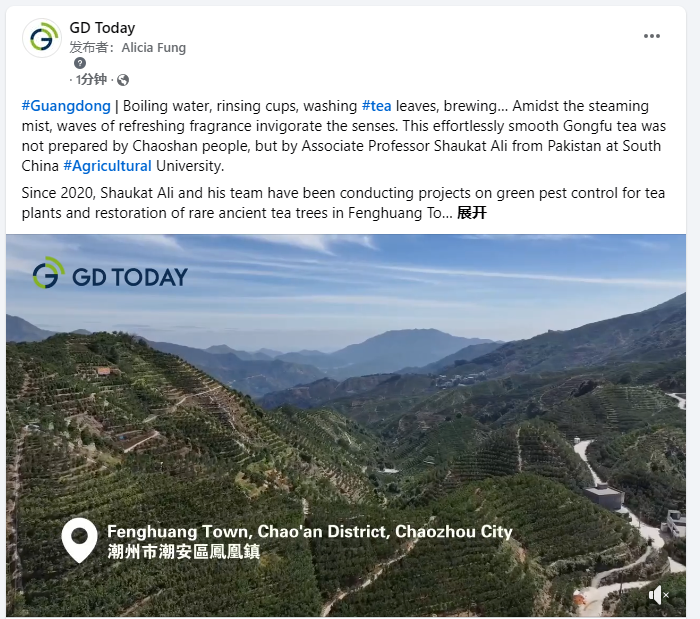 从2020年至今,阿里·肖卡特和团队在潮州市潮安区凤凰镇开展茶树病虫害绿色防控和珍稀古茶树修复复壮项目,茶农对他们团队从开始的不理解到后面的离不开,他也成为了当地居民口中的茶树“洋医生”。