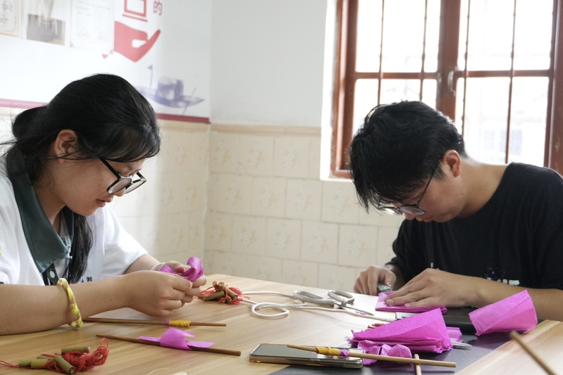 2024年7月,华体会首存 林学与风景学院竹蜻蜓传承支教团——墨雨青竹队,怀揣着对非物质文化遗产的敬意与热情,走进了茂名信宜市的甘理明花灯工作室,开展大学生“百千万工程”暑期社会实践活动。