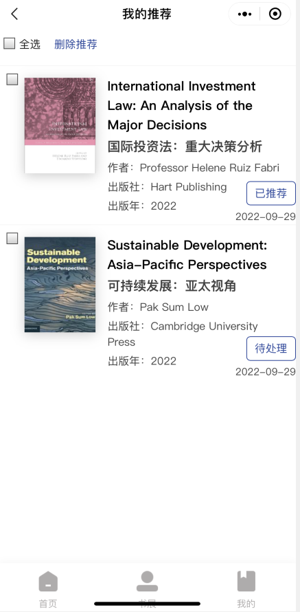 6.选择需要推荐的图书,选择微信登录,填写推荐理由即可完成在线推荐。