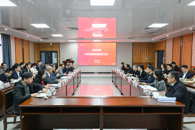 为深化产学研融合发展,12月9日,广州市副市长王焕清一行来校调研交流。学校党委书记李凤亮、校长薛红卫、副校长仇荣亮接待王焕清一行。