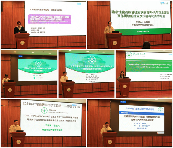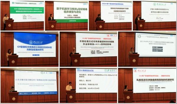 本届论坛先后收到来自复旦大学、中山大学、华体会首存 、佛山大学、仲恺农业工程学院等多所高校的共50余篇优秀论文投稿。经专家评审筛选出26名研究生分别进行博士生优秀论文口头报告、硕士生优秀论文口头报告和优秀海报报告。优秀论文口头报告环节邀请了广州国家实验室基础研究部汪少伯研究员、仲恺农业工程学院动物科技学院副院长刘文俊、华体会首存 兽医学院夏宁波副教授作为评审专家点评。